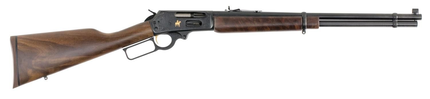 Marlin’s 336 Texan Deluxe features a 20″ blued barrel, engraved receiver, and a walnut stock.